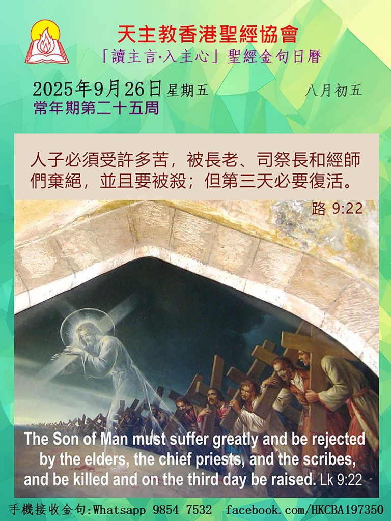 人子必須受許多苦,被長老、司祭長和經師們棄絕,並且要被殺;但第三天必要復活。