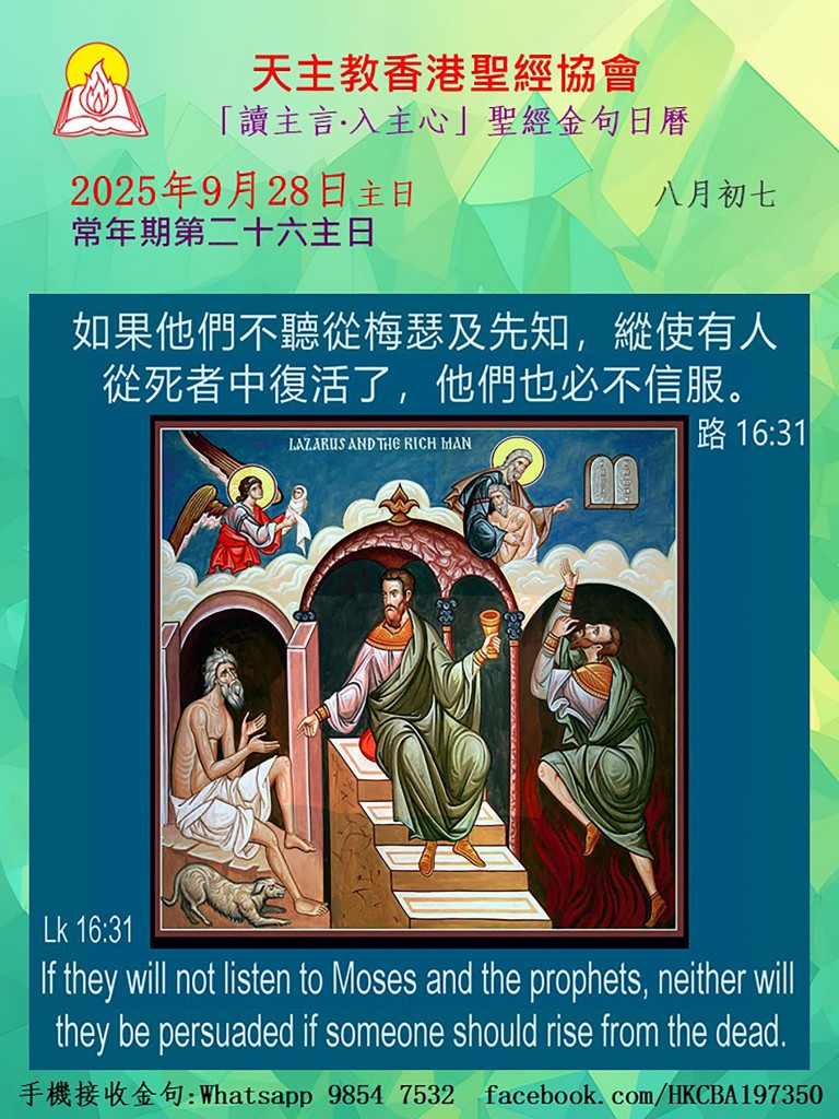 如果他們不聽從梅瑟及先知,縱使有人從死者中復活了,他們也必不信服。