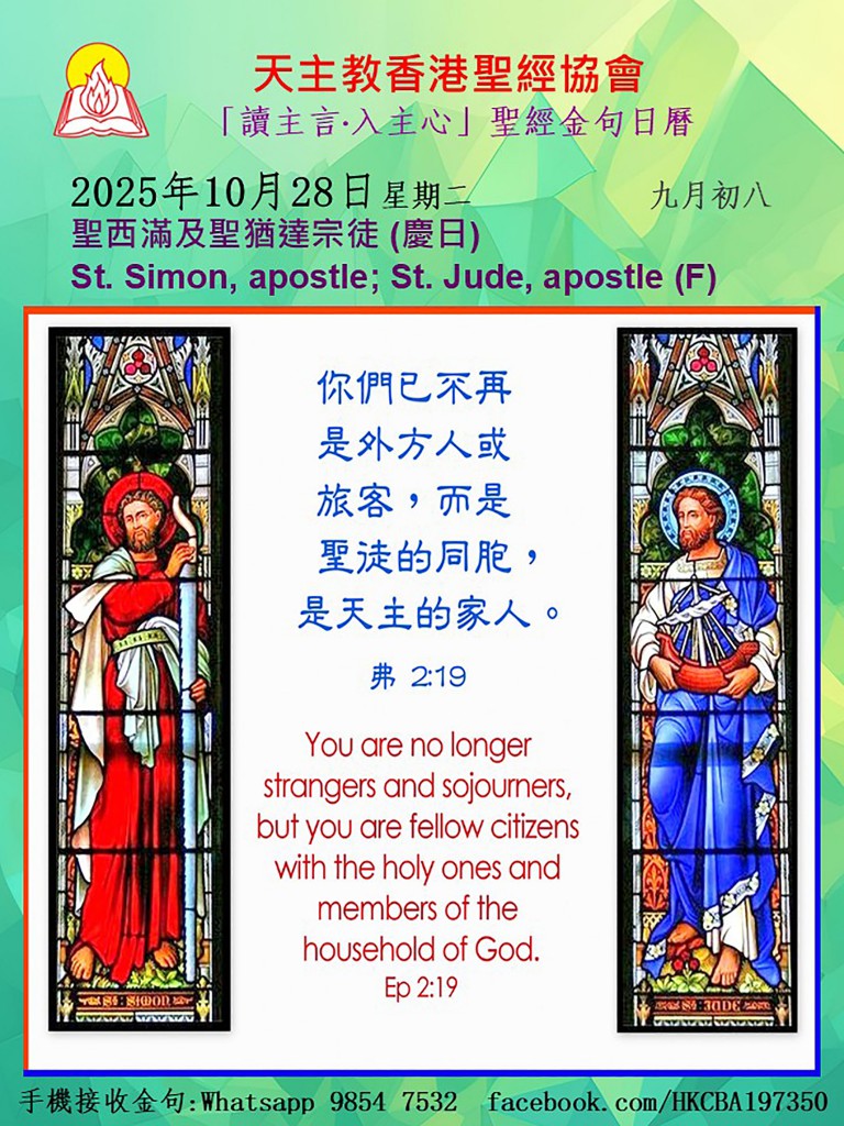 你們已不再是外方人或旅客,而是聖徒的同胞,是天主的家人。