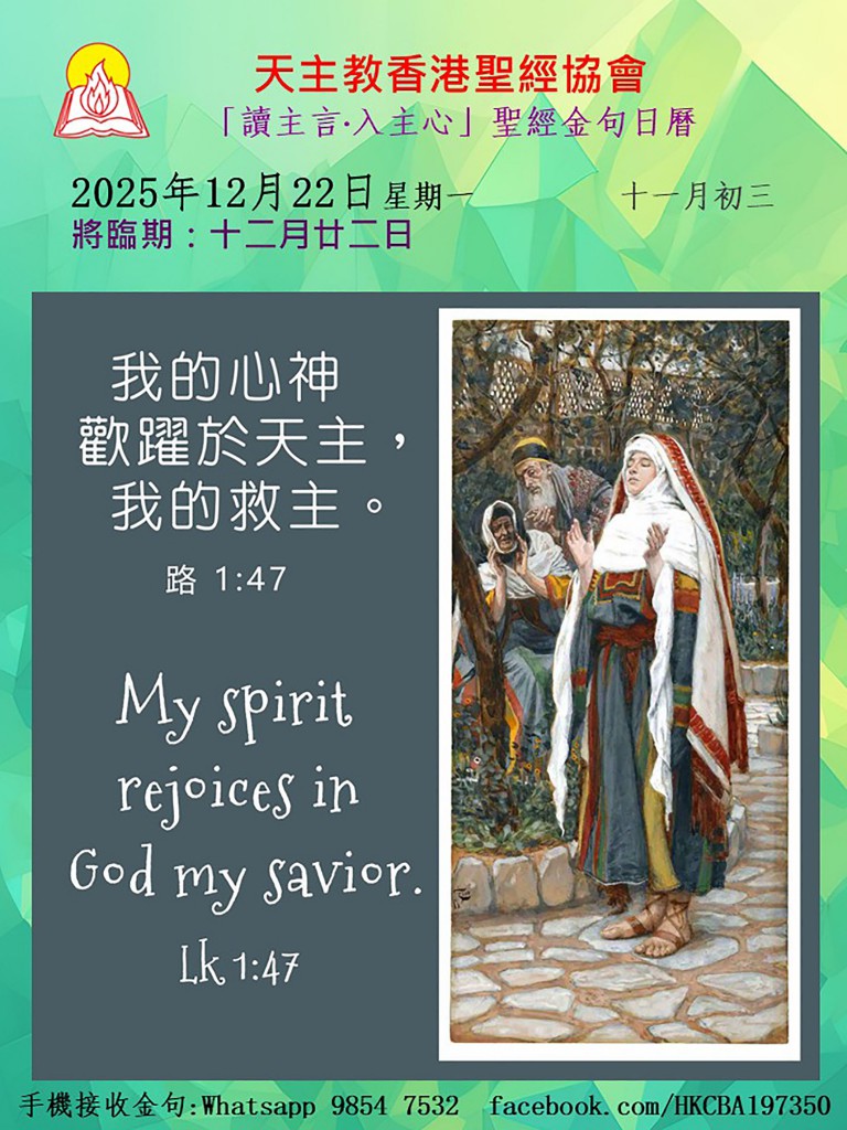 我的心神歡躍於天主,我的救主。