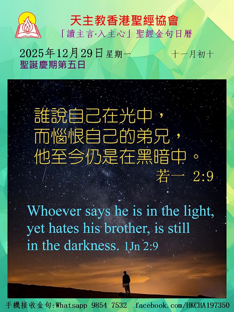 誰說自己在光中,而惱恨自己的弟兄,他至今仍是在黑暗中。
