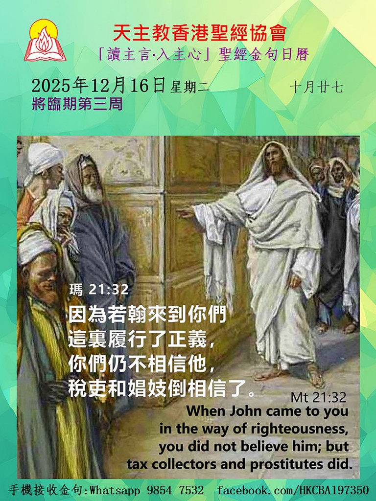 因為若翰來到你們這裏履行了正義,你們仍不相信他,稅吏和娼妓倒相信了。