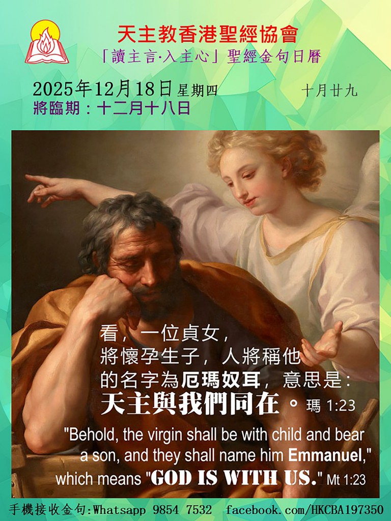 看,一位貞女,將懷孕生子,人將稱他的名字為厄瑪奴耳,意思是:天主與我們同在。